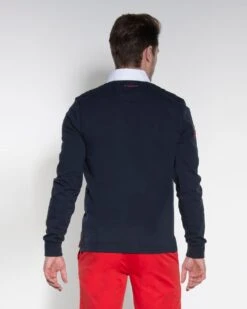 Een sweater van Donkervoort. Deze sweater heeft een polo kraag en elastische boorden aan de mouwen en de onderkant. Het logo van Donkervoort is op de rechterschouder gedrukt, ook i…
