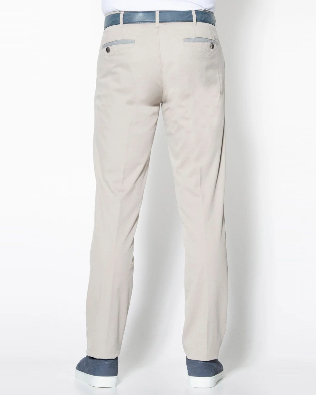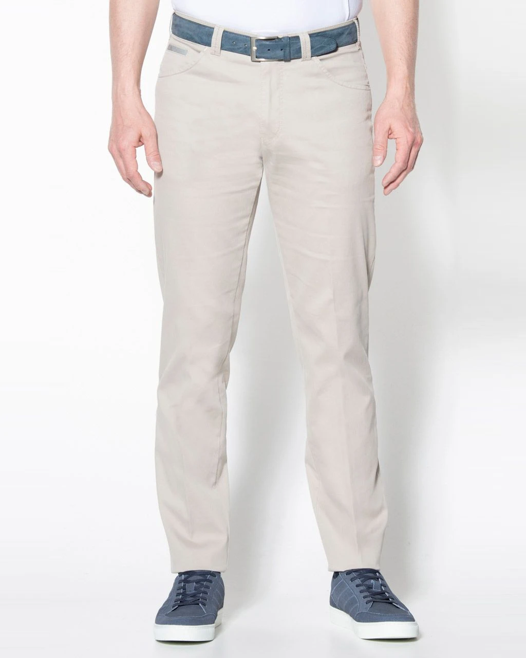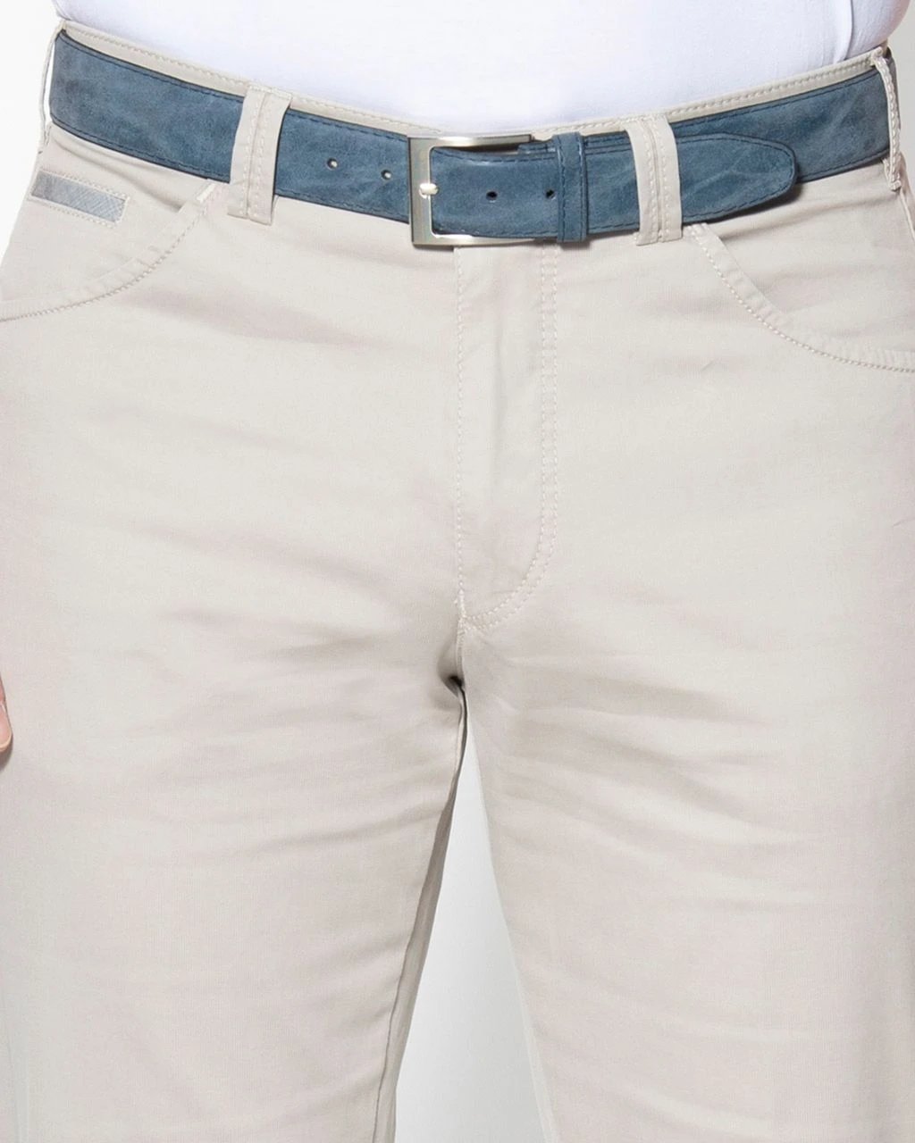 Lichtbeige chino van Meyer in pima cotton. Deze luxe katoensoort is dun, …